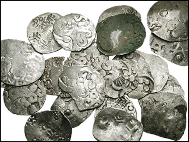 Average diameter 25mm, average weight 2.70 g. Each piece with a variety of separate punch-marks applied to both sides.